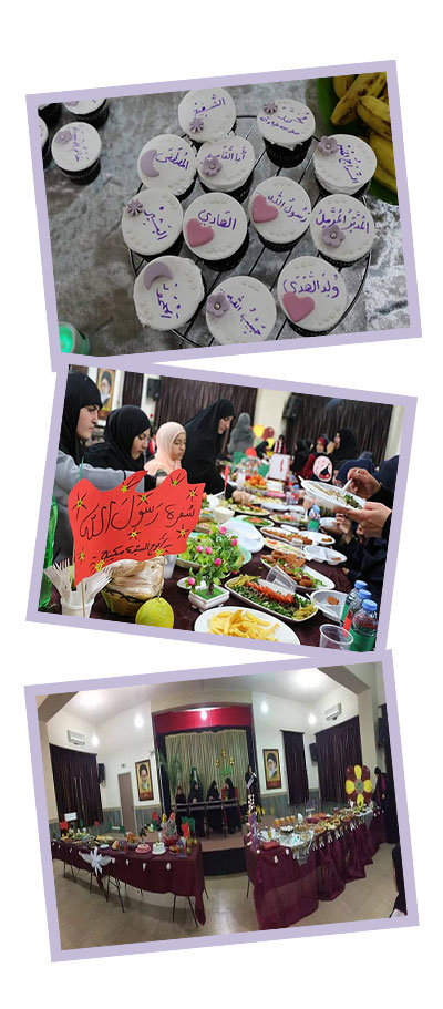 من حب الرسول استوحينَ الفكرة، ولطلب الأجر شددنَ الهمم، فانقسمنَ الى فريقين وتبارينَ في تحضير اجمل سفرة على حب النبي محمد(صلى الله عليه وآله). هكذا أحيت فرق المرشدات والدليلات والقائدات في فوج السيدة سكينة (عليها السلام)/باتولية ولادة الرسول الاكرم(صلى الله عليه وآله)، وقد انتهت المنافسة بتتويج اجمل سفرة، ومن ثم تناول الجميع الغذاء المصنوع من طعام متنوع مجبول بالصلاة على محمد وال محمد.