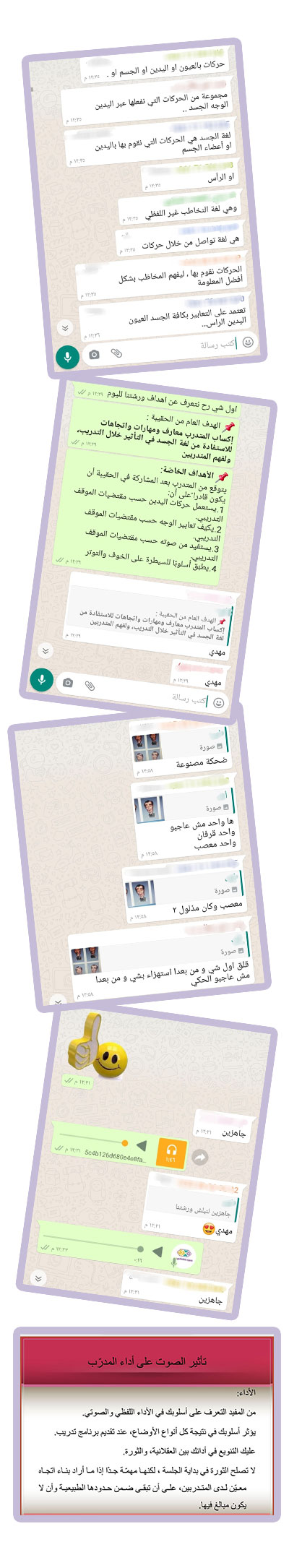 ضمن سلسلة الورش التدريبية والتأهيلية التي تقيمها مفوضية جبل عامل الأولى لقائداتها، نفذت المفوضية ورشة تحت عنوان "جسدك يتحدث" بمشاركة 21 قائدة بهدف إكساب المتدربات معارف ومهارات واتجاهات للإستفادة من لغة الجسد في التأثير خلال التدريب وذلك عبر برنامج الواتسآب.