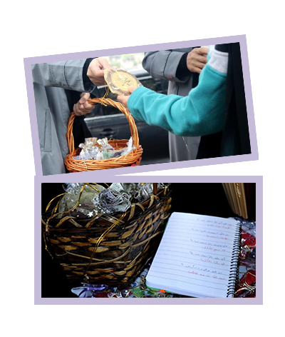 ) من خلال زيارة منازل العناصر وتوزيع الحلوى والشموع وسؤالهن أسئلة حول المناسبة.