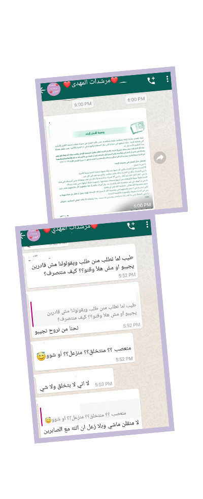 شاركت مرشدات السيدة نرجس/ طيرفلسيه في جلسة إلكترونية و ورشة بعنوان "رضاهما واجبي" تناقشن خلالها في آداب التعامل مع الوالدين، واختتمت الورشة بدعاء الحجة.