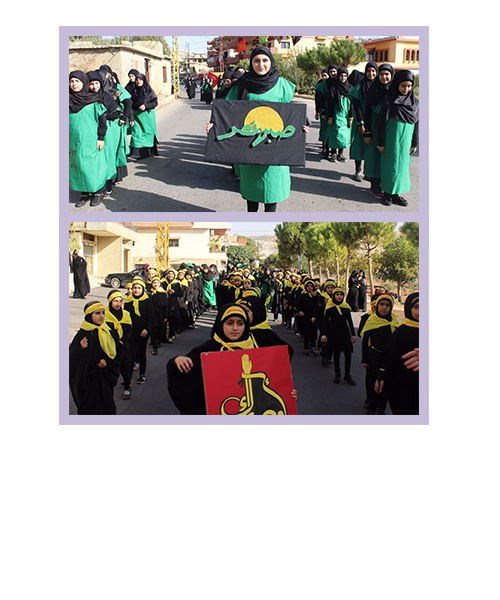 بمسيرة ملبية، سارت المرشدات الكشفيات في فوج السيدة أم البنين (عليها السلام) / عدلون مفوضية جبل عامل الثانية، مواساة للسيدة زينب (عليها السلام)، حاملات المجسمات العاشورائيّة التي تجسد واقعة الطف.