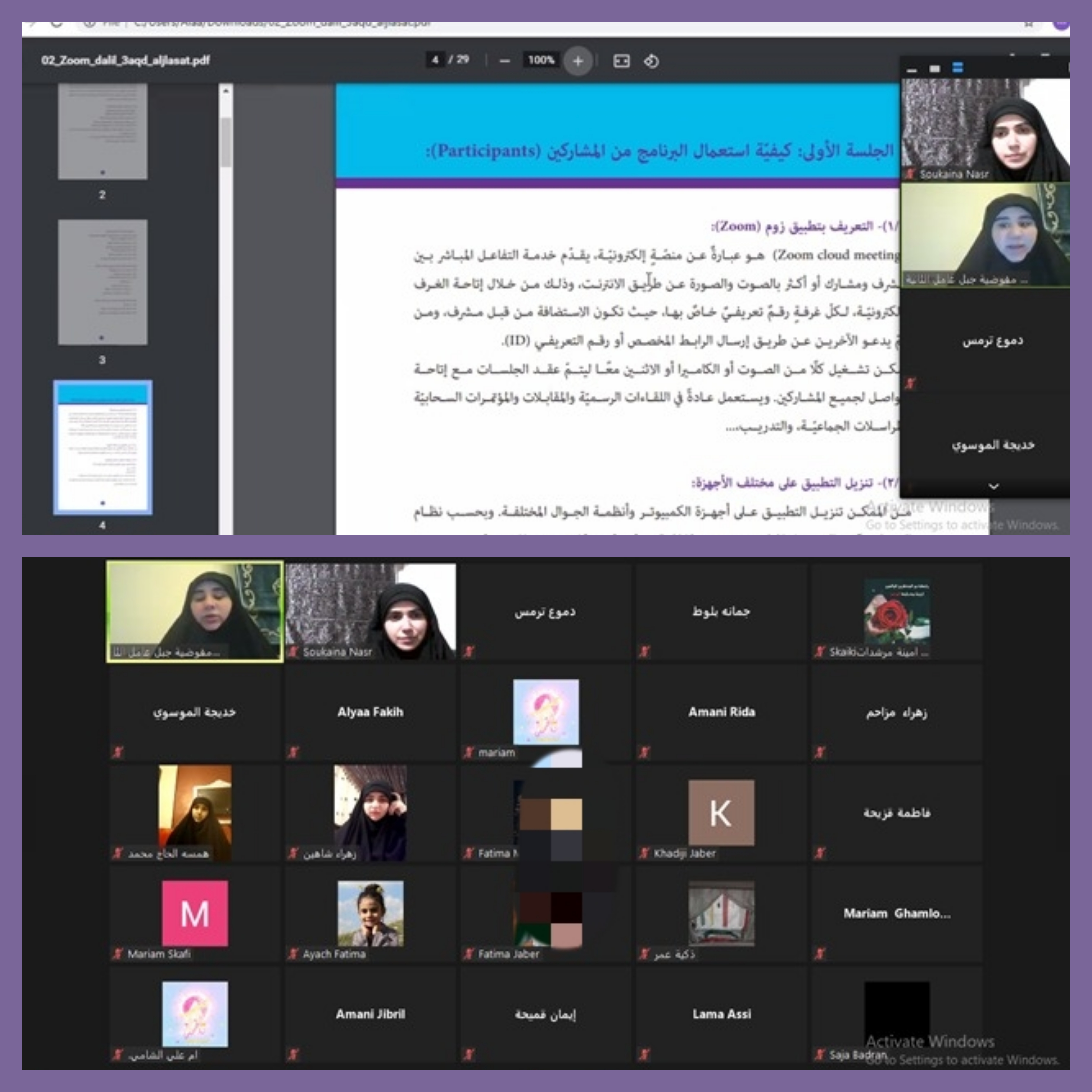 قدمت الورشة أمينة الموارد البشرية في مفوضية المرشدات القائدة ألاء شعبان، وخلالها تعرفت القائدات المشاركات على كيفية إنشاء صف إلكتروني و إدارته بالإضافة إلى التعرف على سلبيات و إيجابيات الزووم.