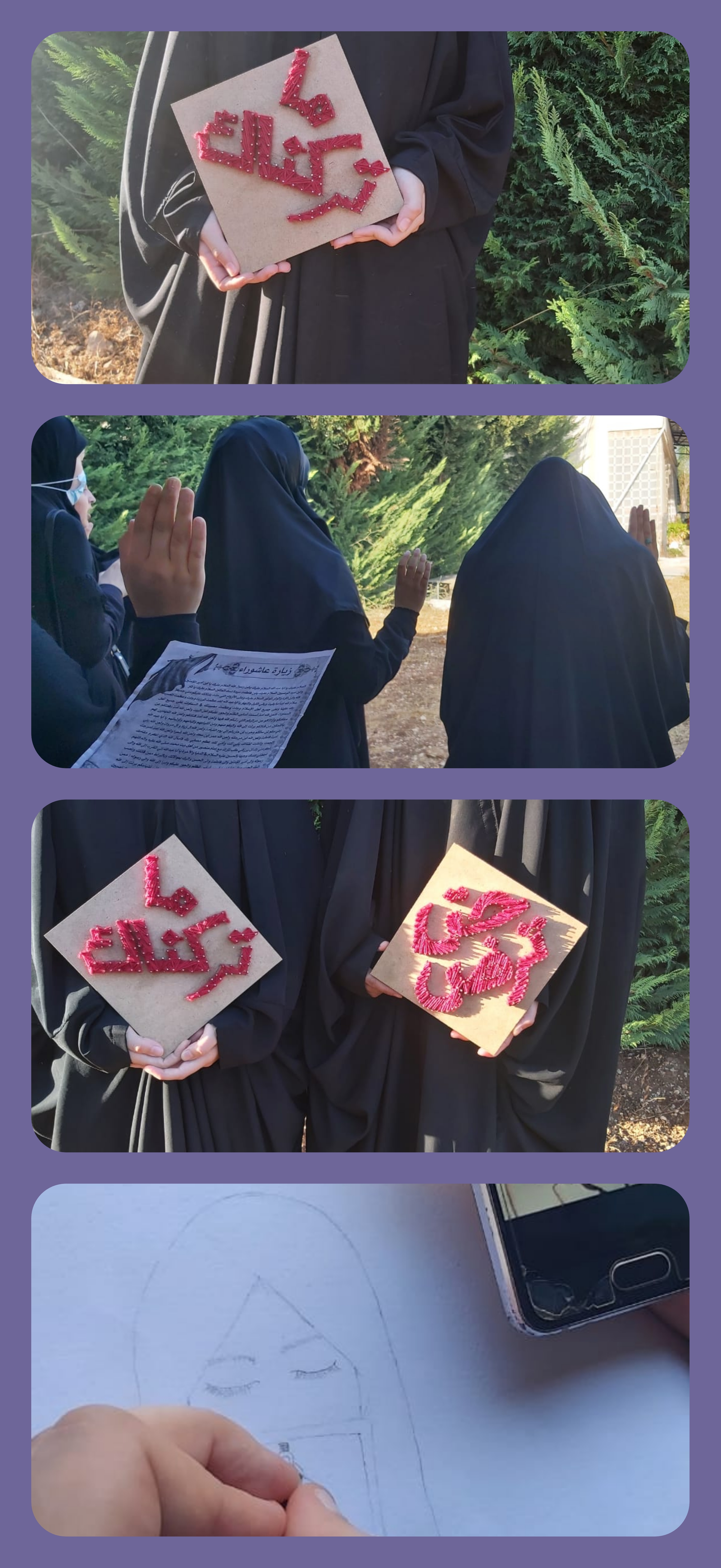 من ضمن المجالس العاشورائية التي أقيمت لوحدة الدليلات في فوج السيدة سمية (عليها السلام) /النبطية الفوقا مفوضية جبل عامل الثانية، أقيم نشاط فني عاشورائي للدليلات تخلله تشبيك لوحات من وحي الأجواء الحُسينية.