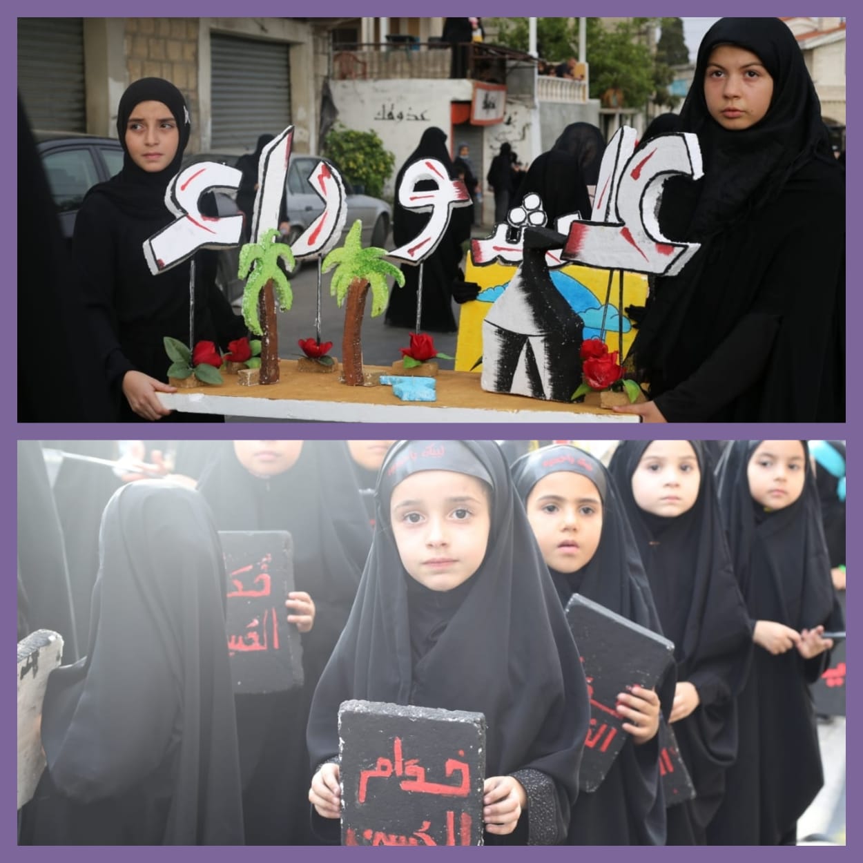 سارت في فوج الشهيدة أم ياسر (رضوان الله عليها )-حبوش مفوضية جبل عامل الثانية، مسيرة عاشورائية حسينية جددت الزينبيات المشتركات خلالها التلبية والولاء لأبي عبدالله الحسين - عليه السلام.