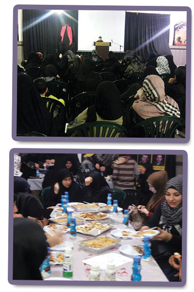 أقام القطاع السادس مفوضية بيروت في أجواء أربعين الإمام الحسين (عليه السلام) نشاط عاشورائي للدليلات والقائدات والأمهات في مجمع السيدة خديجة (عليها السلام) المصيطبة تضمن قرآن كريم ، سكتش، مجلس عزاء، ليمة وكلمة لأمينة المرشدات في القطاع بمشاركة 65 مرشدة كشفية.