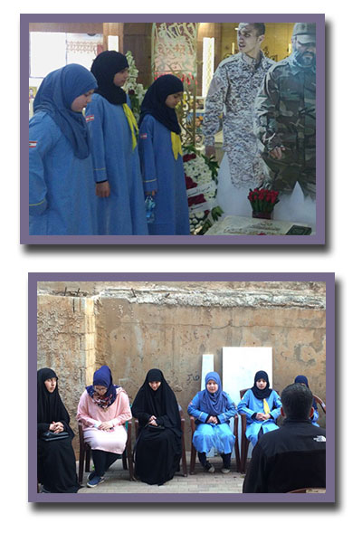 بمناسبة ذكرى الشهداء القادة وبحضور 15 مرشدة كشفية نفذ فوج السيدة مريم (عليها االسلام) القطاع الثامن مفوضية بيروت زيارة الى روضة الحوراء (عليها السلام) حيث تم قراءة الفاتحه على أضرحة الشهداء واختتم النشاط بلقاء مع احد المجاهدين.
