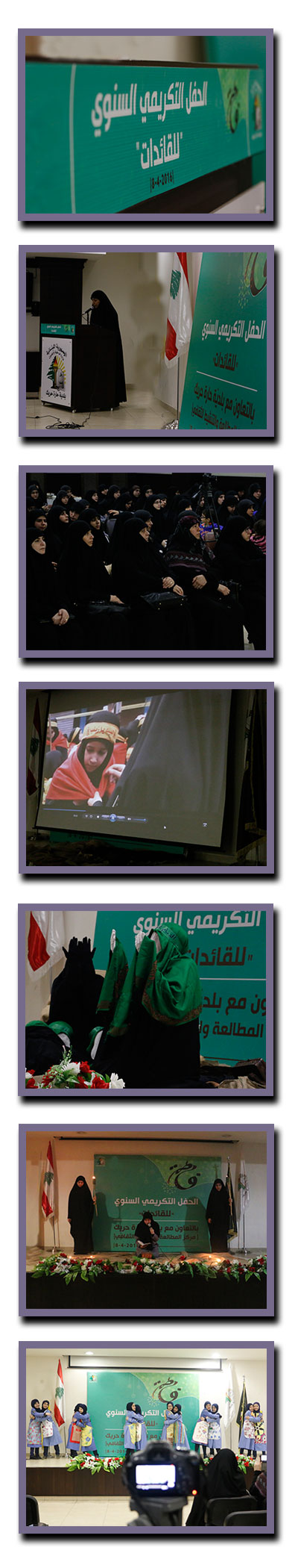 برعاية رئيس جمعية كشافة الإمام المهدي (عجل الله تعالى فرجه الشريف) الشيخ نزيه فياض وبمناسبة ولادة السيدة الزهراء (عليها السلام) يوم القائدة، وبالتعاون مع مركز المطالعة والتنشيط الثقافي في بلدة حارة حريك أقيم احتفال تكريمي لقائدات مفوضية بيروت في قاعة المركز ,الحفل الذي حضره 190 قائدة كشفية تخلله كلمة الجمعية وعرض روبورتاجات خاصة بالمناسبة إضافةً إلى منح أوسمة وقلادات وشهادات على القائدات.