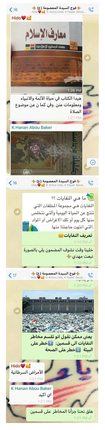 ورشة الاسعافات الأولية مشاركة عدد من قائدات جمعية مرشدات المهدي في استقبال قداسة البابا في بيروت نشاط فوج السيدة نرجس الأسبوعي رحلة إلى حرش بيروت وحرش كيفون تجارب علمية النشاط الأسبوعي في فوج العقيلة عليها السلام مسرحية سفر افتتاح المركز الجديد لفوج الخندق الغميق النشاط الأسبوعي في فوج أم البنين