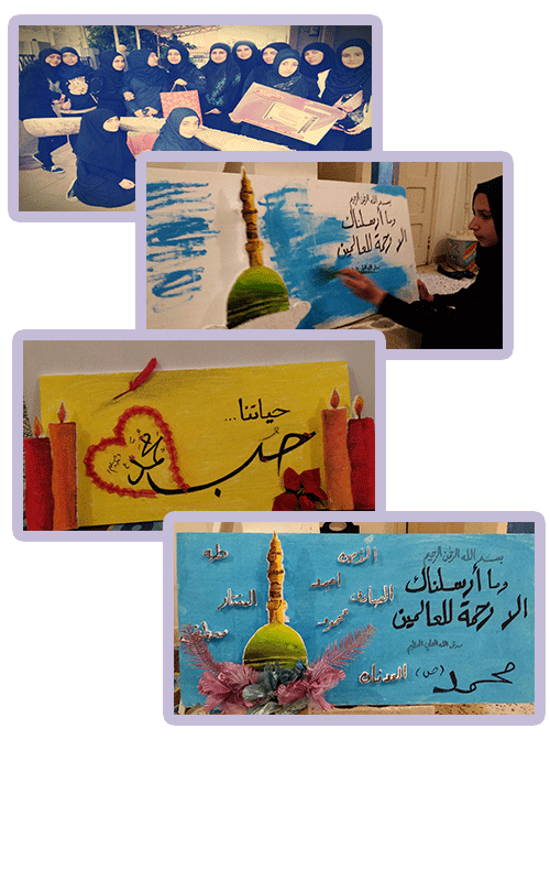 بمناسبة ولادة الرسول الاعظم محمد (صلى الله عليه وآله وسلم) أقامت دليلات قطاع الشرقيه في منطقة بياقوت مجموعة من اللوحات الفنية من الفلين وتعليقها في مفترقات وأحياء المنطقة احتفالا بالذكرى النبوية الشريفة.