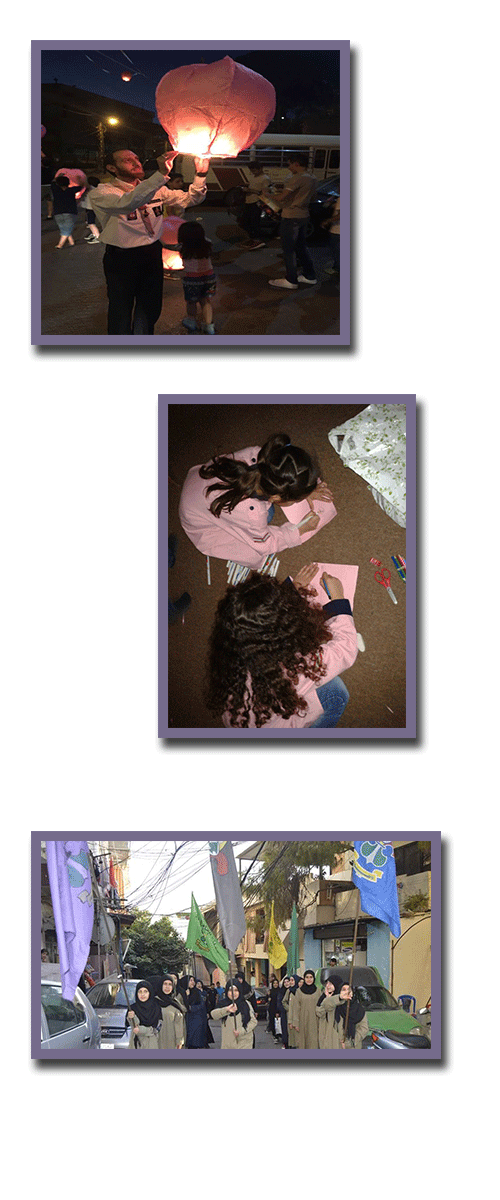 كما كانت سماء المناطق مضيئة بعد أن أشعلن المناطيد.. وفي هذه المناسبة المباركة حضر مفوض المنطقة في كشافة الإمام المهدي الشيخ حسين حلال.