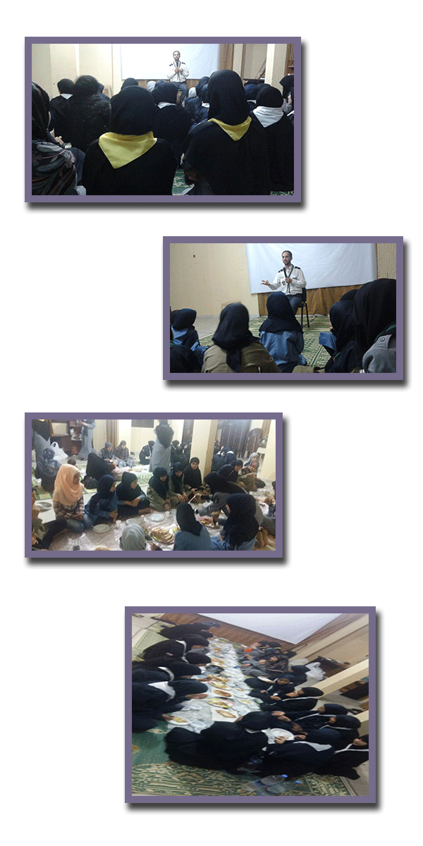بالاشتراك وبالتعاون مع جمعية كشافة الامام المهدي عجل الله فرجه وبحضور القائد أحمد البزال وقائد القطاع الاول أقام فوج السيدة خديجة عليها السلام افطارا بمناسبة يوم القدس. بداية أقمن صلاتي المغرب والعشاء بعدها جلسن على مائدة الرحمان ثم استمعن لكلمة القائد احمد البزال التي تحدث فيها عن دور المرآة والغزو الثقافي واختتم النشاط بدعاء الحجة.