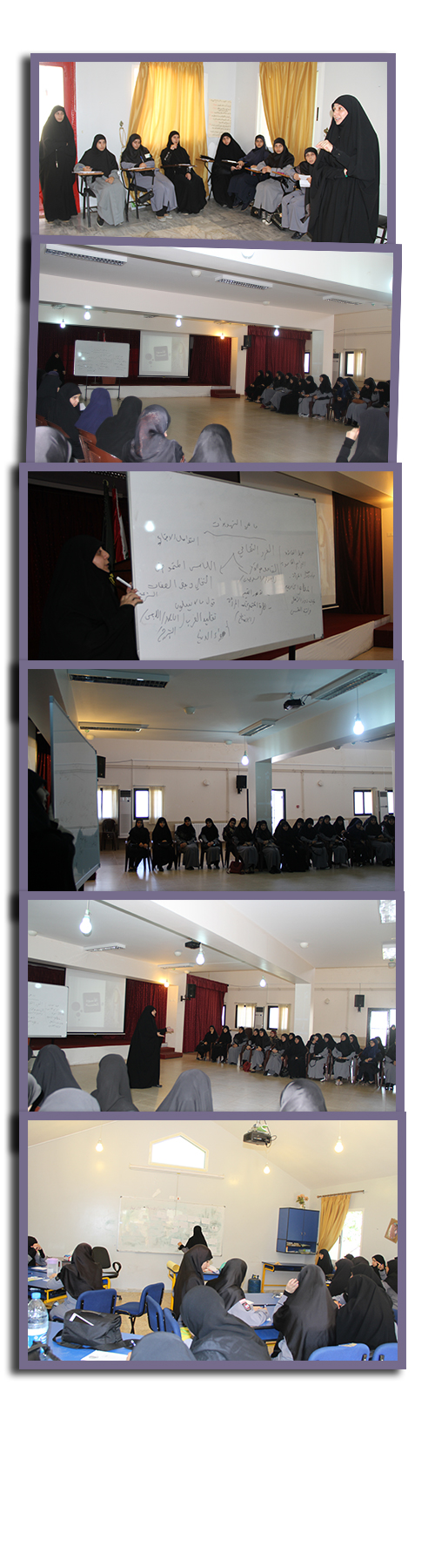 عناوين الورش لاقت اقبالاً وتفاعلاً من المشاركات اللّواتي بلغ عددهن 496 قائدة أضفن في كل ورشة من الورش إلى جعبتهن فائدة جديدة واسلوباً جديداً ومساراً بين يدي صاحب الزمان (عجل الله فرجه).