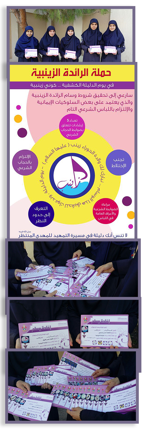 تحضيراً لأجواء ولادة الحوراء زينب (عليها السلام) الذي يصادف يوم الدليلة الزينبية،ومن ضمن أنشطتها التي تستهدف بها وحدات الدليلات على امتداد المنطقة،أطلقت مفوضية المرشدات في جبل عامل الثانية وبالتعاون مع جمعية كشافة الإمام المهدي (عجّل الله فرجه) "حملة الرائدة الزينبية"،التي تهدف لحث الدليلات على تحقيق شروط وسام " الرائدة الزينية" الذي يُعنى باللباس الشرعي والتوجيه الإيماني،السلوكي والأخلاقي لدى كل الدليلة،وعليه بدأ العمل بالحملة والمشروع وتحصيل شروط الوسام تحضيراً لموعد الولادة المباركة التي ستقام خلالها العديد من أنشطة ومهرجانات الأفراح.