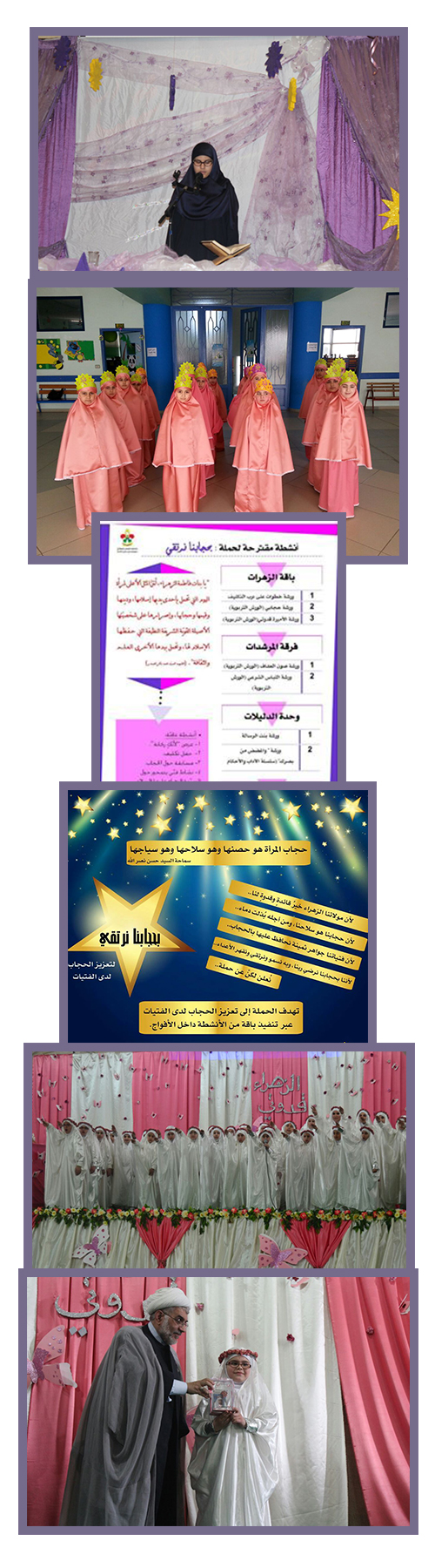 تحت عنوان "بحجابنا نرتقي" وفي أجواء ولادة السيدة فاطمة الزهراء(عليها السلام) ومن ضمن أنشطتها المتألقة دوماً،عملت مفوضية المرشدات في مفوضية جبل عامل الثانية بمشروع تعزيز الحجاب بمشاركة 44 فوجاً من أفواج المرشدات في المنطقة،سعين الى تنفيذ 82 نشاطاً بمشاركة 1499 مرشدة كشفية.